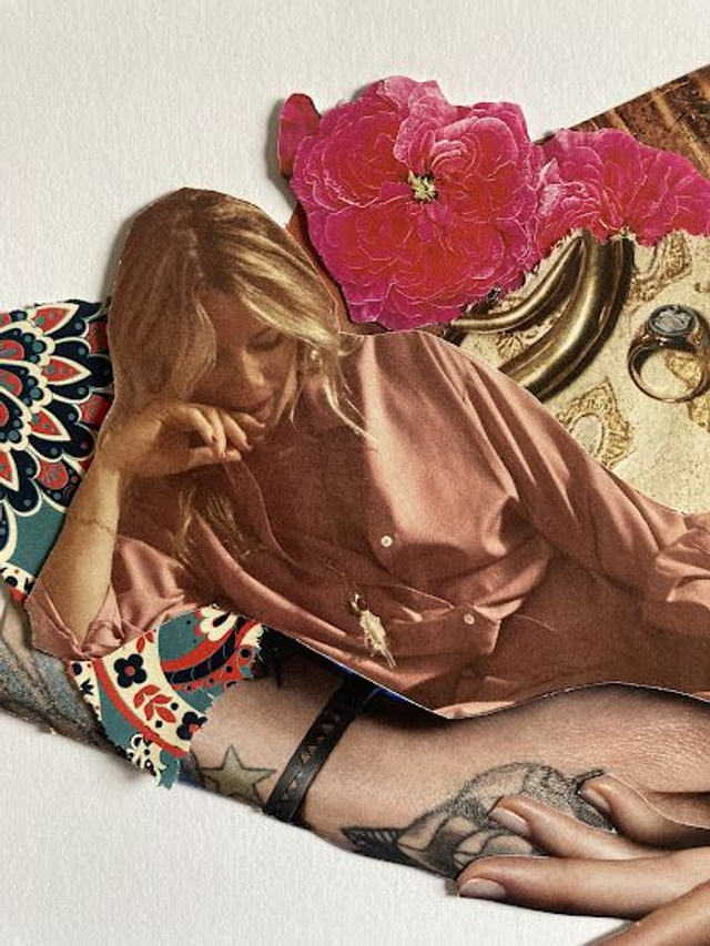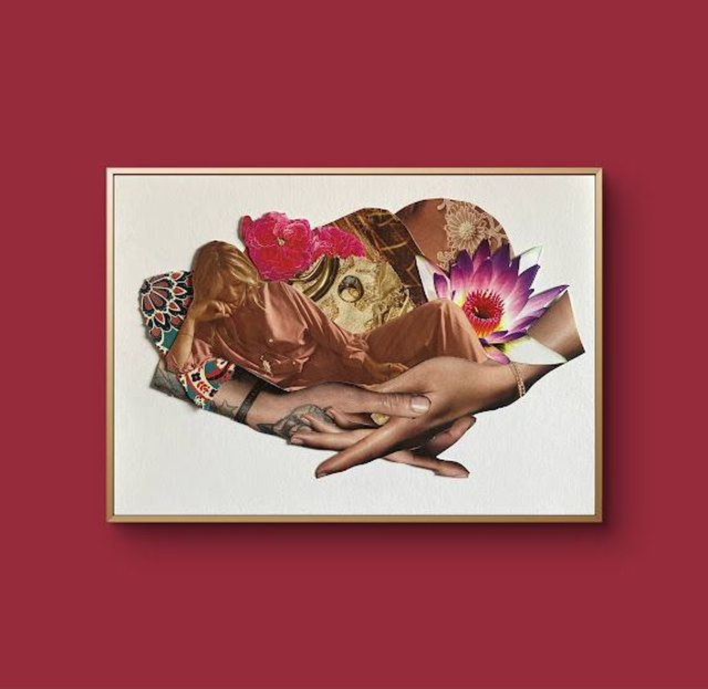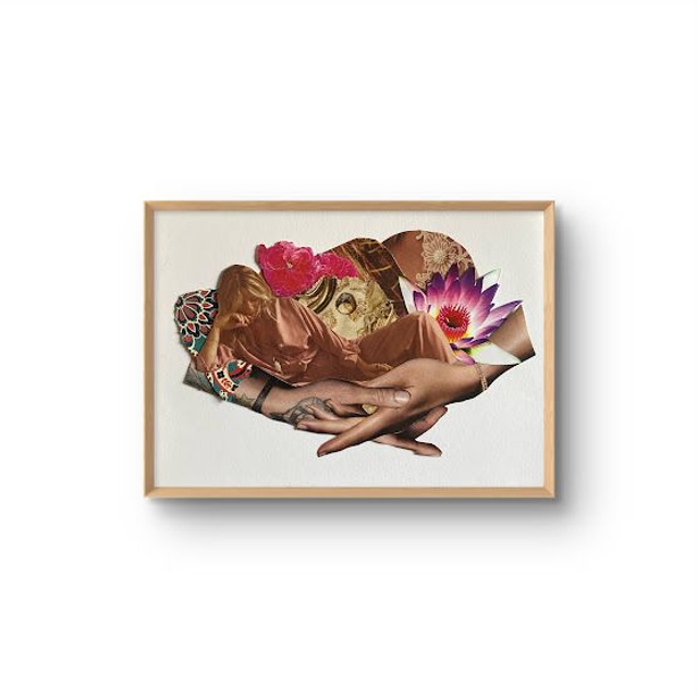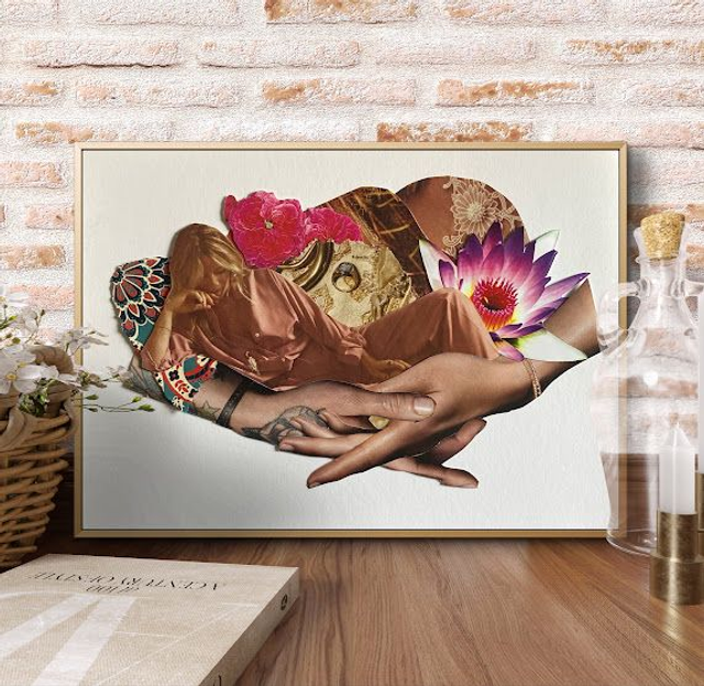Ce collage illustre ce que nous portons en nous, le poids de nos souvenirs et la richesse de nos sentiments. Il dévoile ce que nous cachons et ce que nous concédons à offrir à l'autre. Cette oeuvre est un rappel de notre capacité à façonner notre quotidien entre nos propres mains.