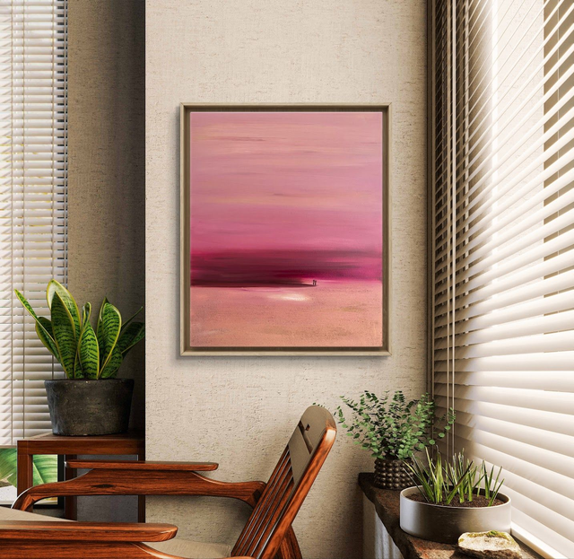 La toile fait partie d’une série intitulée “chemin sauvage” réalisée à base de sable de l’île Maurice mélangé à la peinture à l’huile.