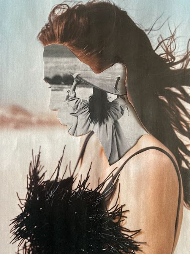 Ce collage est inspiré par cette envie qui nous traverse de tout envoyer valser pour partir vers l'inconnu. Ce picotement au bout de nos doigts, ce coeur qui se serre, ces jambes qui trépignent, l'envie de voyager qui nous démange. Cette oeuvre est un rappel pour ne pas oublier d'écouter cette petite musique dans notre esprit qui nous appelle et qui sonne le début de l'aventure.